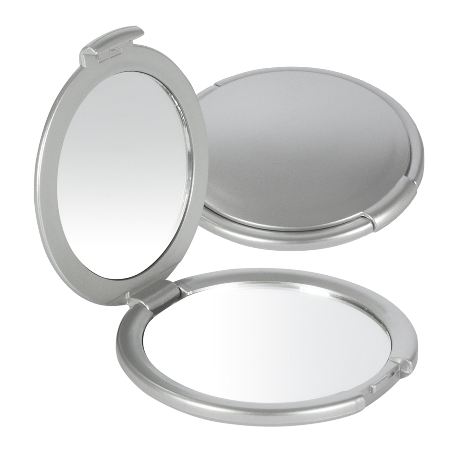 Espejo plástico plateado redondo doble, contiene 1 espejo normal + 1 espejo con aumento.
