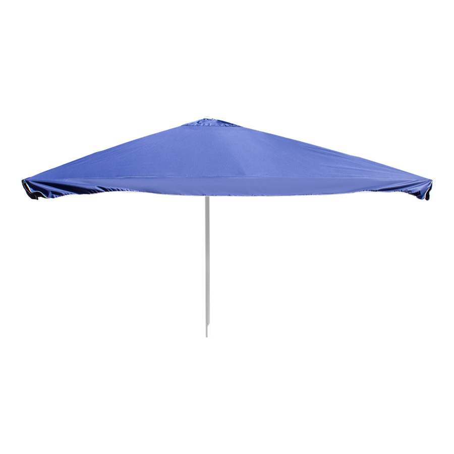 Quitasol gigante cuadrado de 4x4m, con 4 cascos de lona Poliéster UV impermeable de 180g. Contiene asta de Acero recubierto de 60mm de diámetro x 3.4m de altura, sistema de apertura manual. Para su instalación, se recomienda anclar el quitasol directamente a un hoyo en el concreto o pavimento, o bien utilizar la base P24, la que también se debe anclar con 4 pernos (incluídos en la base) al concreto o pavimento. Si el largo de estos 4 pernos no es suficiente, se recomienda comprar pernos adicionales más largos.